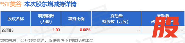证券之星消息,1月4日*ST美谷发布公告《*ST美谷:简式权益变动报告书(信美通成)》,其股东徐国玲于2025年11月14日合计增持1.0万股,占公司目前总股本的0.0013%,变动期间该股股价上涨0.0%,截止11月14日收盘报4.77元。